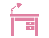 事務所には、一人ひとり専用のデスクを用意しています。家族の写真や花を飾ったり、
